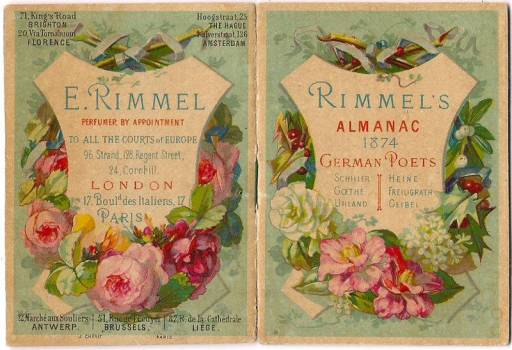Los fabricantes estaban constantemente inventando nuevas combinaciones de materiales decorativos y recursos para hacer una presentación lo más agradable y espectacular posible. Uno de esos nuevos productos fue el presentado por Eugene Rimmel, cuya compañía operaba en Londres, París y Nueva York. Rimmel, un reputado perfumista, concibió un saquito lleno de esencias perfumadas dentro de un sobre al que no le faltaba ni una sola de las características de las cards victorianas.