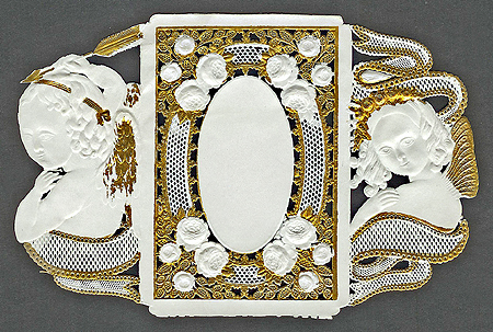 Además, alrededor de 1840 empezó a tintar el papel con románticos colores pastel o con sorprendentes dorados que se mezclaban con los poemas y  distintivas siluetas que adornaban el centro de la postal.