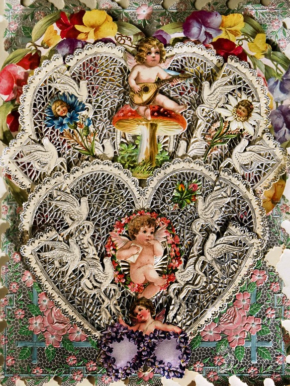 Las St Valentine’s cards victorianas nos trasladan a una época donde los sentimientos de los enamorados se expresaban con cursis poesías escritas en envoltorios tan bellos como extravagantes, pero llenos de tierno amor y esperanza.