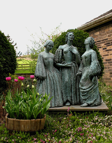2. Estatua de las tres Hermanas Brontë situada en el jardín del Bronte Parsonage, en West Yorkshire