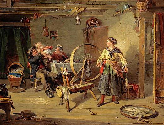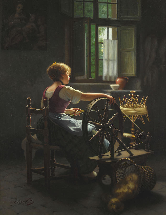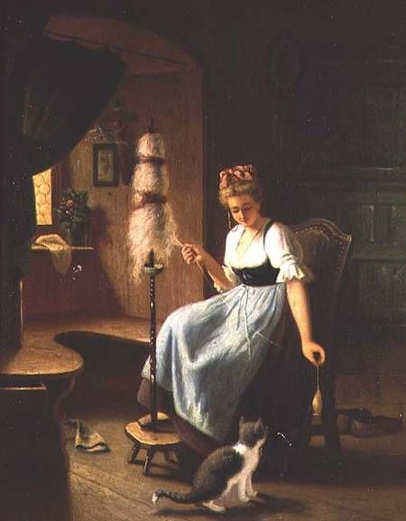 En primer lugar, me gustaría aclarar el uso de la palabra spinster, término que en la actualidad se traduce como“solterona”, para evitar provocar cualquier tipo de malentendido, por lo despectivo de la palabra. En el contexto de esta entrada, una spinster es una mujer que maneja la rueca de hilar, la spinning wheel en lengua inglesa y cuya traducción en español sería hilandera.