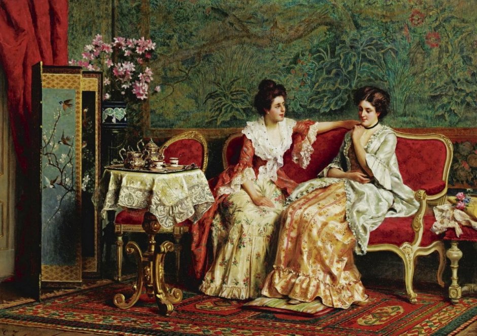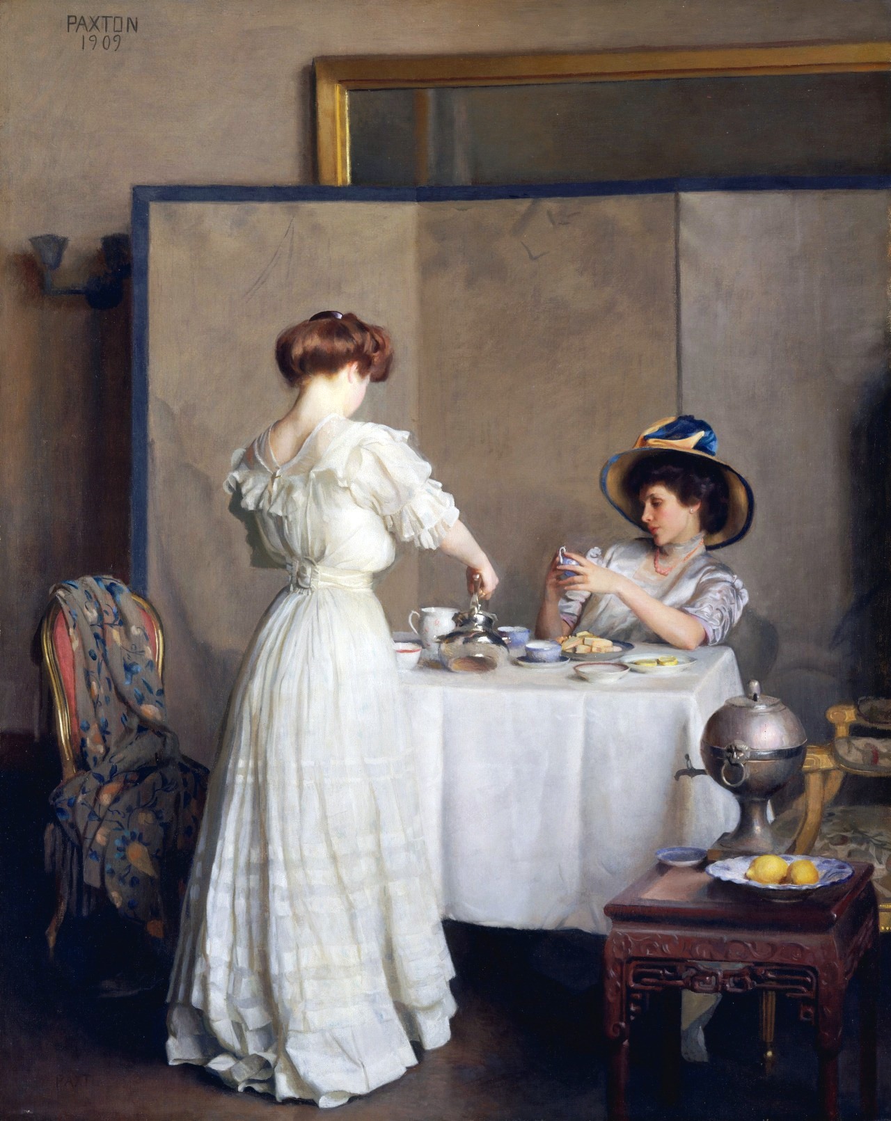 Una invitación para tomar el té, si no era un encuentro entre amigas íntimas o familia, era un acto claramente social, por lo que la buena educación dictaba que no durara más de aproximadamente 45 minutos, tiempo suficiente para una breve y agradable conversación.
