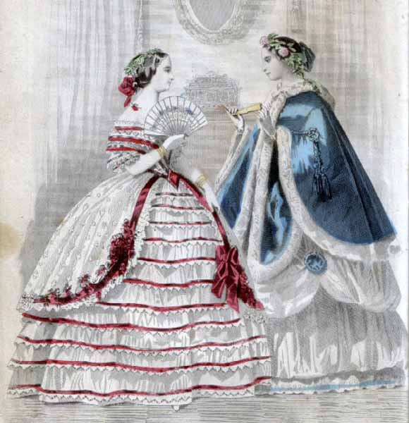 Una dama precavida tendría un par de guantes de calidad para paseo y dos o tres para combinar con los vestidos de noche. Los de paseo eran confeccionados en cuero; los más elegantes llevaban ribetes en terciopelo o piel: Los de noche se elaboraban con seda . El encaje, el crochet y la muselina se reservaban para ocasiones especiales.
